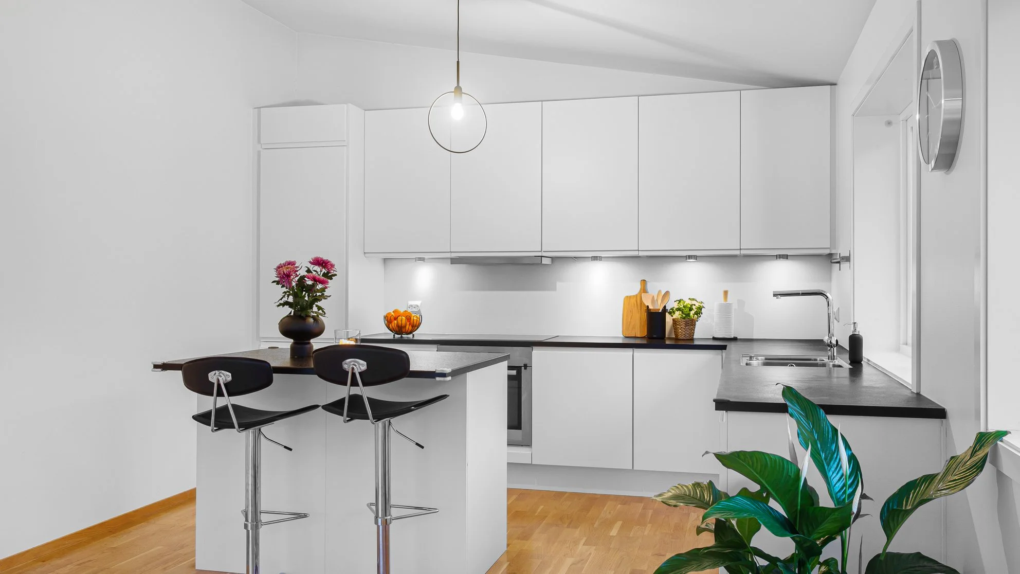 Vis frem mest mulig benkeplass, men har man en espressomaskin som ser fin ut, så la gjerne denne stå.