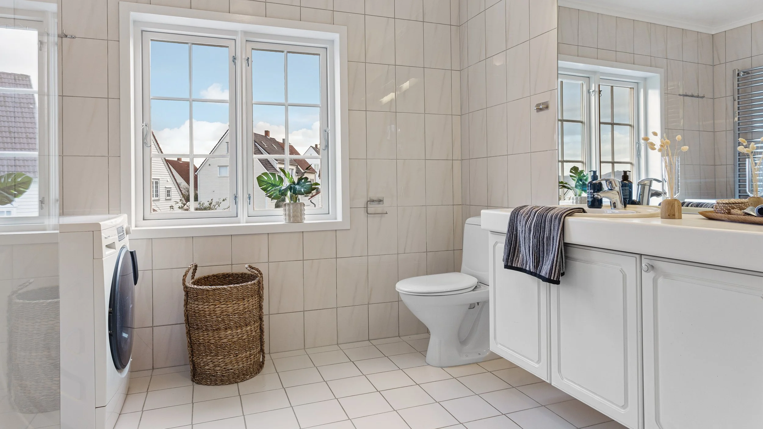 Fjern alt av såper, hygieneprodukter, toalettbørste, søppeldunk, skittentøyskurv, baderomsvekt etc.
