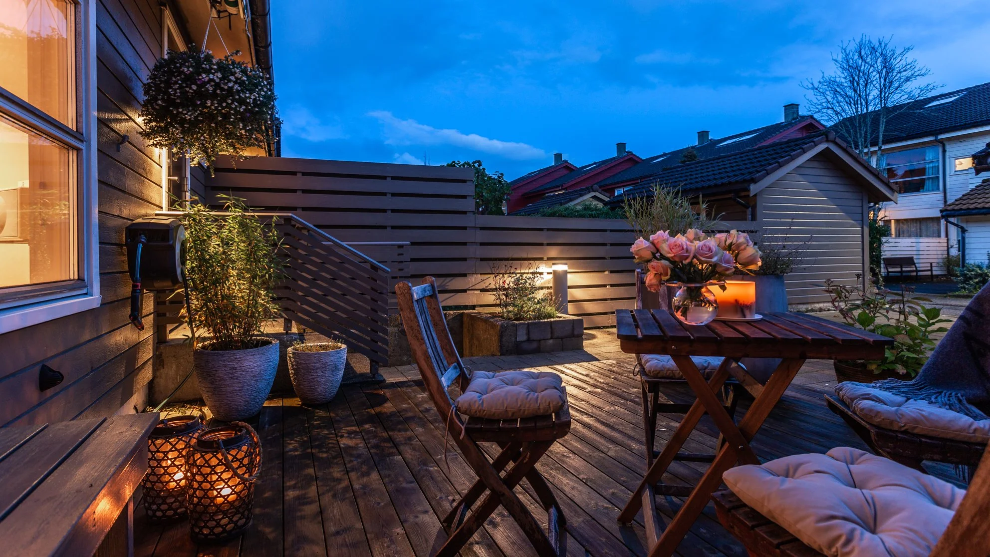 Pynt ute med stearinlys, lanterner ol. på balkonger og terrasser.