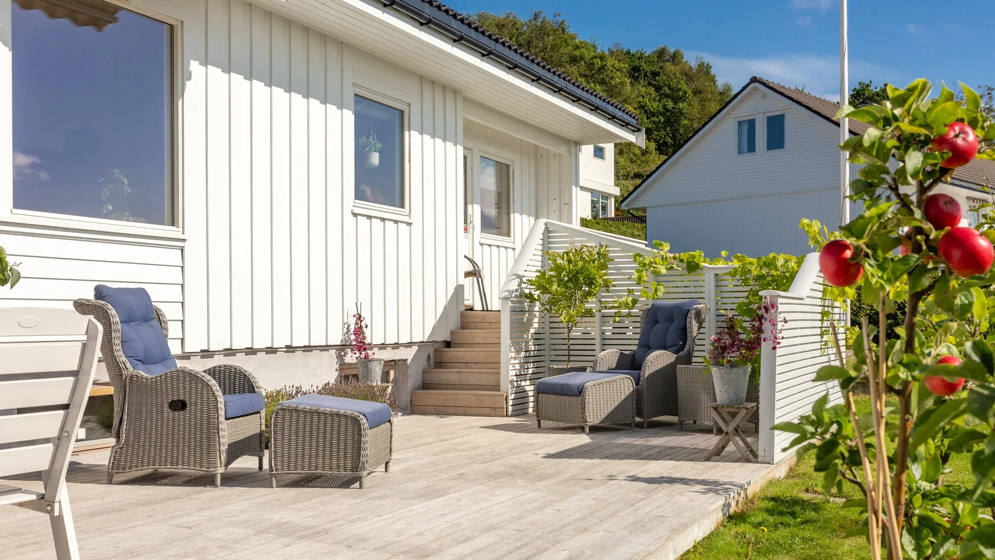Plasser gjerne et bord og et par stoler i et koselig hjørne eller på fremsiden av huset hvis det er plass til det.